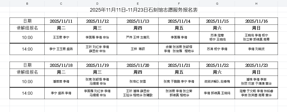 志愿讲解安排(2025年11月11日至11月23日)